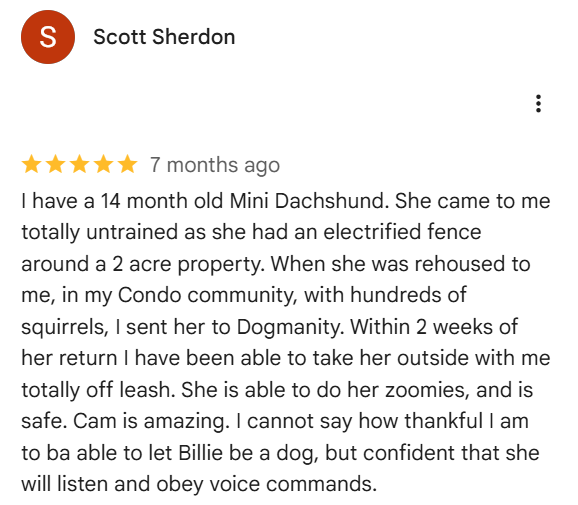 Your dog stays in our structured home environment for an immersive training experience focused on clear communication and real-world skills. Training begins with foundational behaviors and progresses to advanced obedience, leash manners, and behavior modification. Throughout the program, owners participate in hands-on lessons to ensure a smooth transition at home, while receiving regular updates on their dog’s progress.